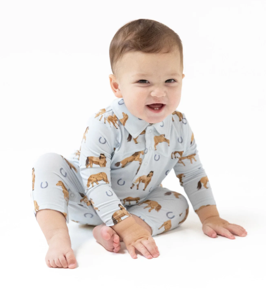 Giddy up and get cozy! Our Long Sleeve Cowboy Romper is made from silky-soft viscose from bamboo, keeping your little wrangler comfy and warm on every fall and winter adventure. With a fun western twist and all the softness your baby loves, this romper is ready for rodeos, playdates, and snuggles by the fire.