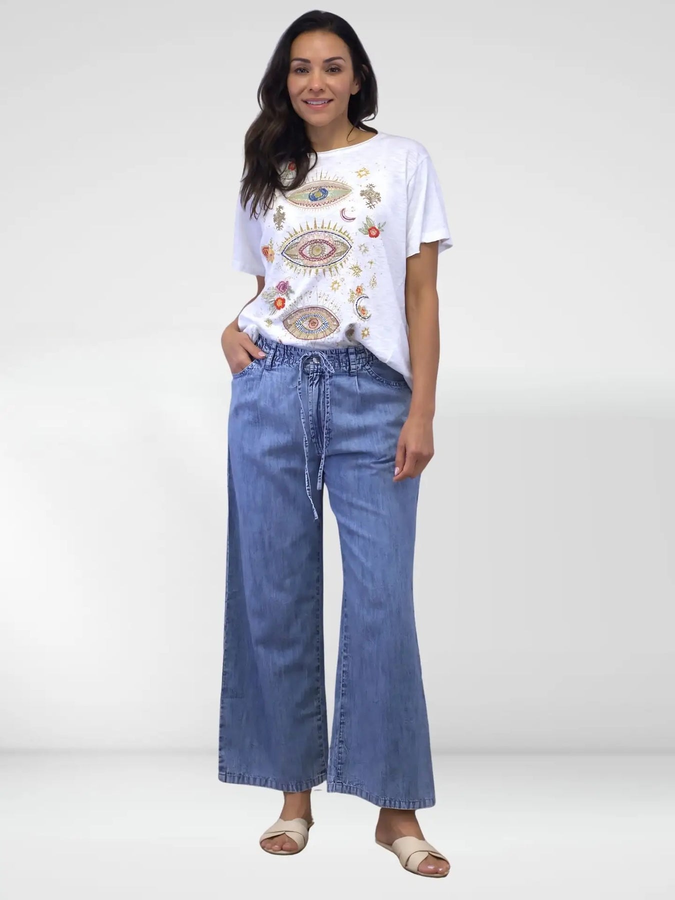 Introducing the Jyoti Tencel Denim Pant by Kyla Seo—your new warm-weather essential that doesn't take itself too seriously. Crafted from breathable Tencel fabric, these lightweight beauties keep you cool when temperatures climb. The elastic drawstring waist means comfort without compromise, while hidden pockets let you stash your essentials (finally!). Perfect for spring strolls and summer adventures, the Jyoti pairs effortlessly with everything in your closet. Say hello to denim that actually works with your lifestyle, not against it.
