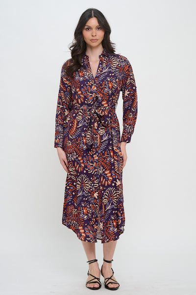 TERRACOTTA WEAVE BUTTON DOWN DRESS