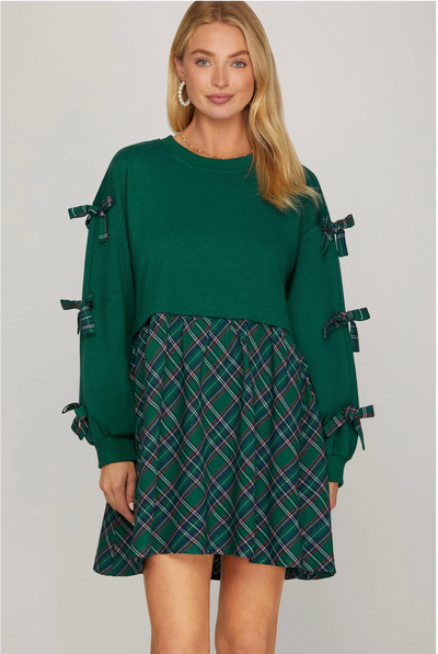 CHRISTMAS CHECKED GREEN MINI DRESS