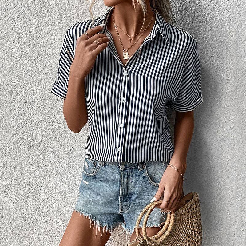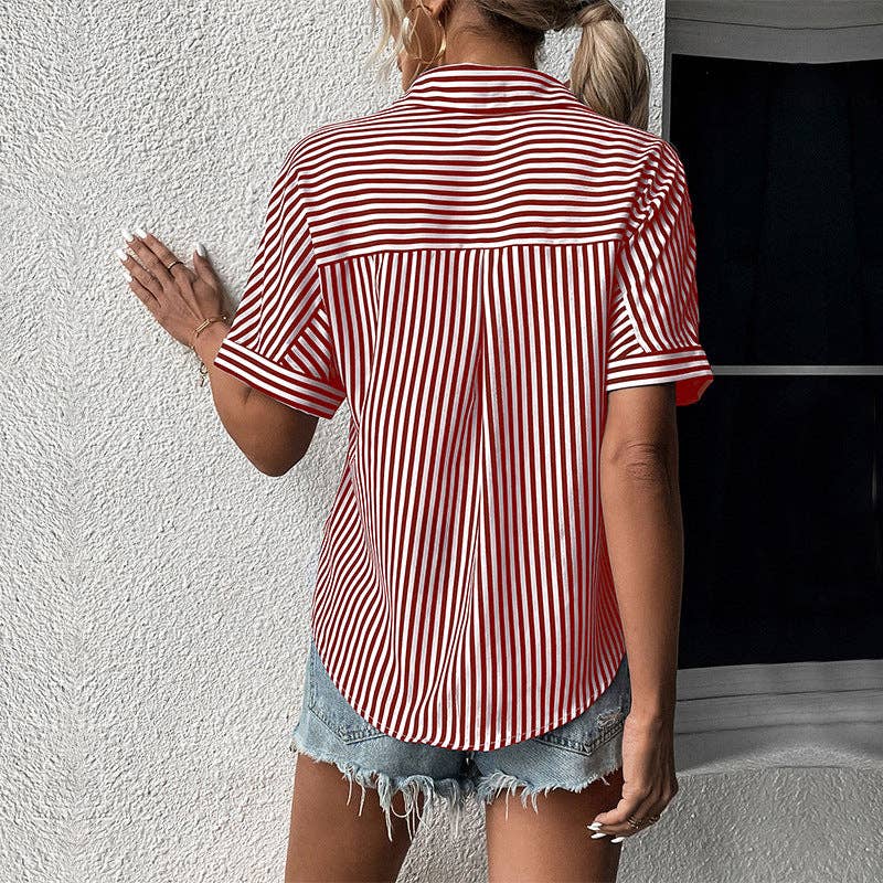 Stripes never go out of style—and this red wine short sleeve shirt proves it! Crafted from 100% polyester, it's lightweight, making it perfect for layering or wearing solo. The classic lapel collar and crisp striped pattern add instant polish to any outfit, whether you're dressing up for brunch or keeping it casual. Easy to care for and endlessly versatile, this wardrobe staple works as hard as you do.
