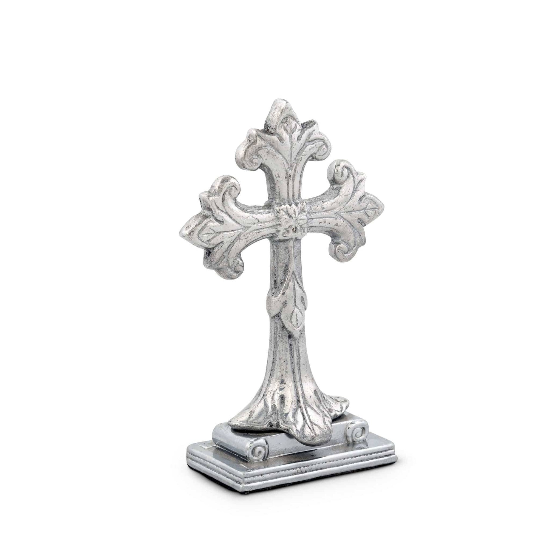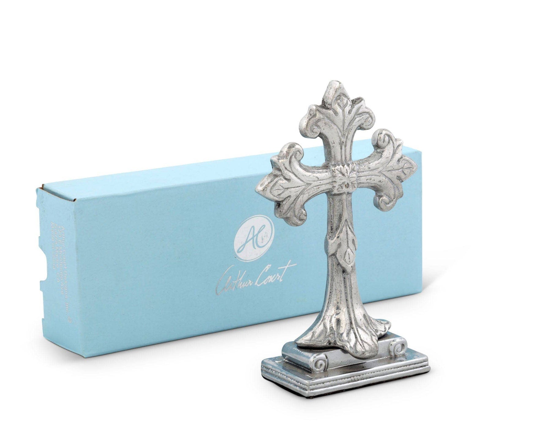 The ancient Greeks excelled at politics and philosophy, but what most resonates with us today from this period is the classical architecture and sculpture we can still experience. That sentiment is evident in this finely crafted 3.25 x 5-inch classical cross from Arthur Court, which features realistic textures and ionic flourishes at its base. Its hand-polished aluminum never tarnishes, and should be hand washed and towel dried immediately. Steeped in symbolism, this piece appeals to all members of the Christian faith, as the fleur-de-lis is the symbol of the holy Trinity as well as French nobility. It represents the shape of the pure lily, but is also depicted as the sword of righteousness in its exaggerated point.