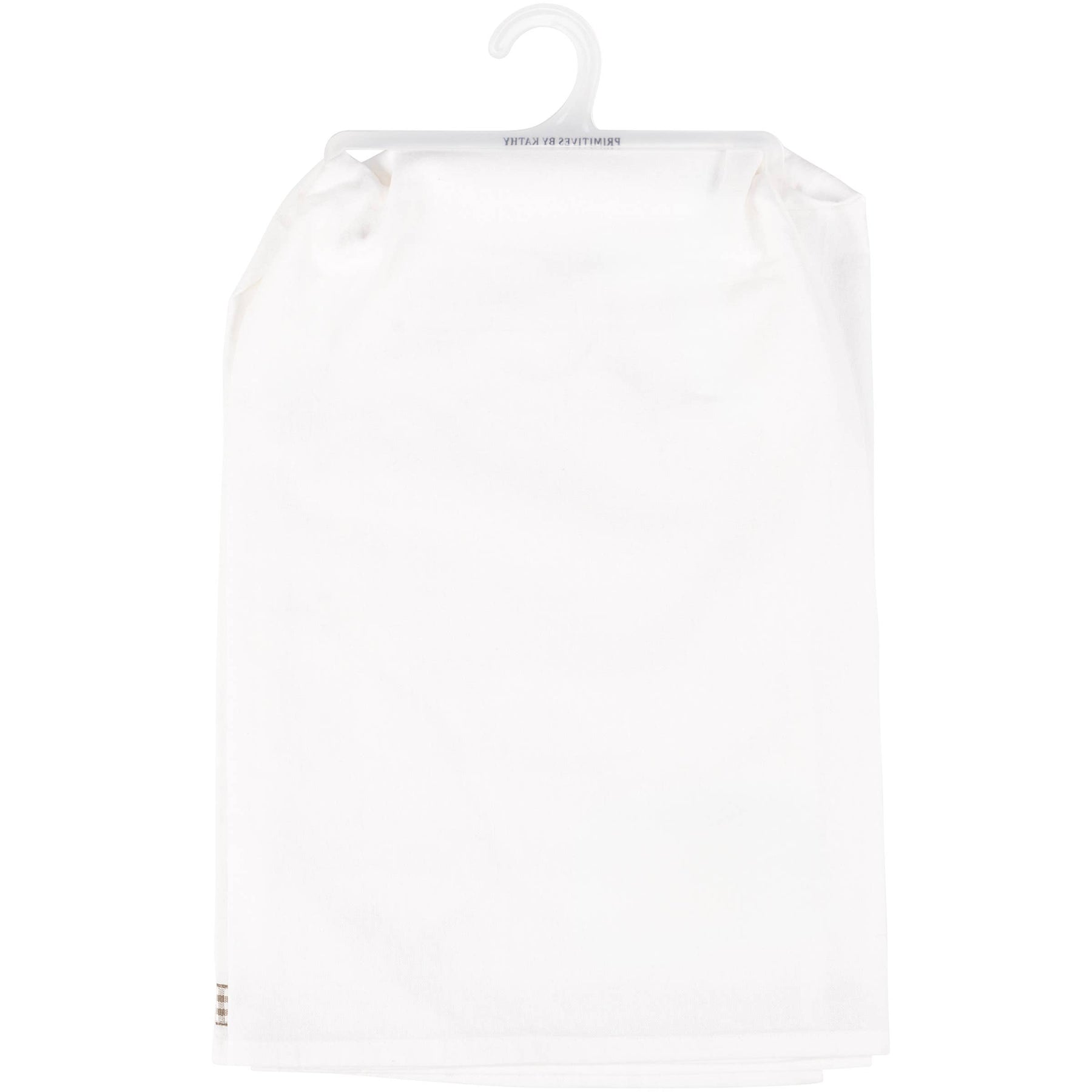 A white cotton kitchen towel from our Trash Talk By Annie Collection displaying a vintage photograph on a stitched art panel with grey gingham ribbon and humorous sentiment that reads "Who Needs A Spring Chicken... When You Can Have A Well-Seasoned Bird." Our Spring Chicken kitchen towel is conveniently machine-washable for easy cleaning. Packaged on a clear plastic hanger to easily display on rack. A fun everyday kitchen accent great for gifting.